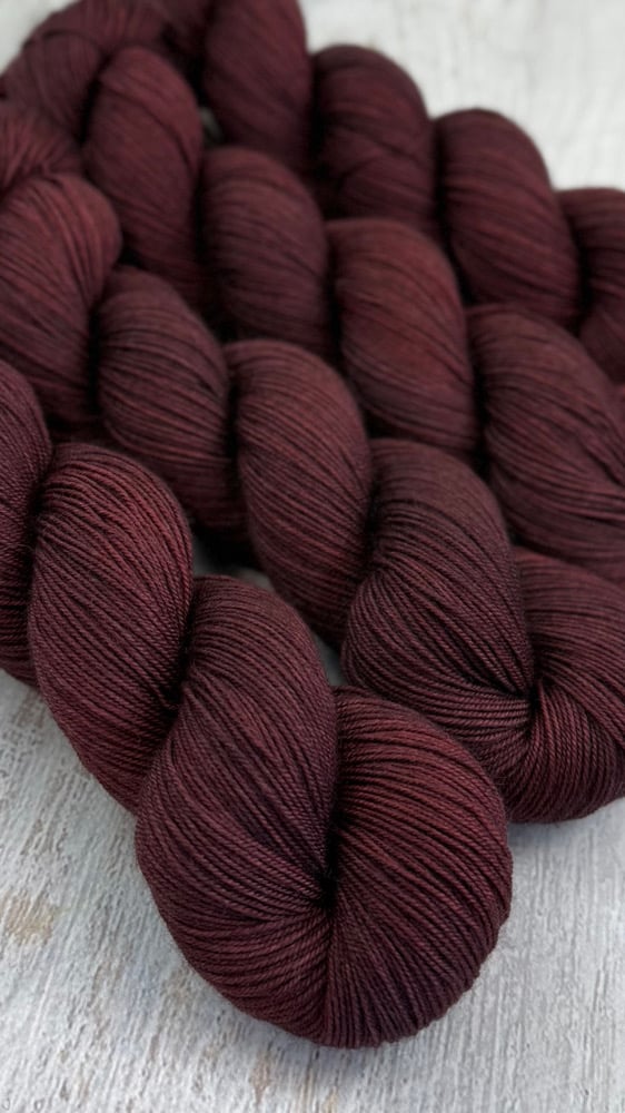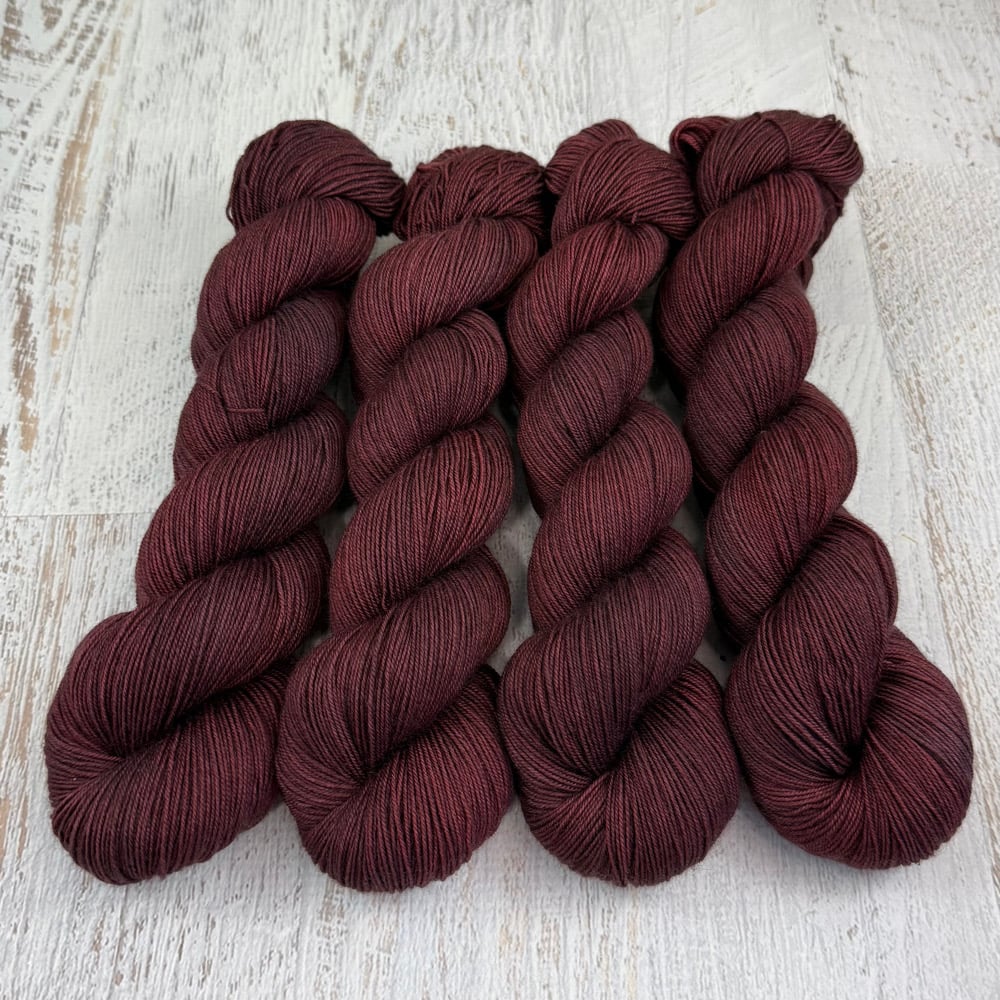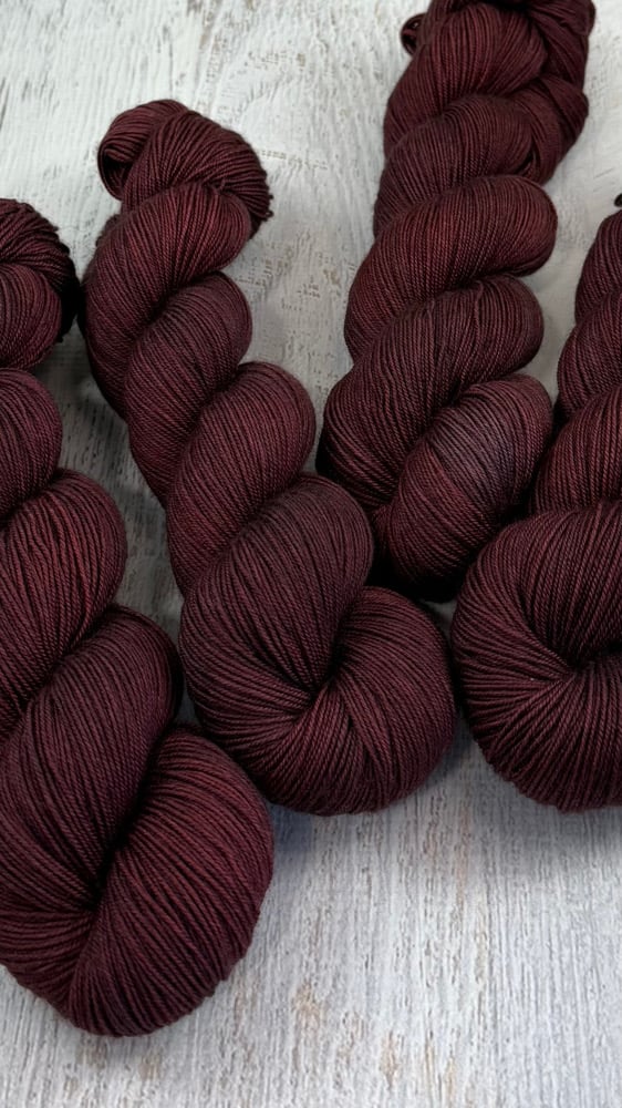 A beautiful shade of dark red wine. I mixed a couple dye colors to get this shade and it's so gorgeous! The black undertones are awesome.